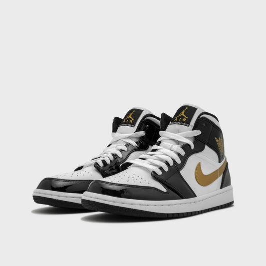 UitverkochtJordan 1 Mid Patent Black Gold White