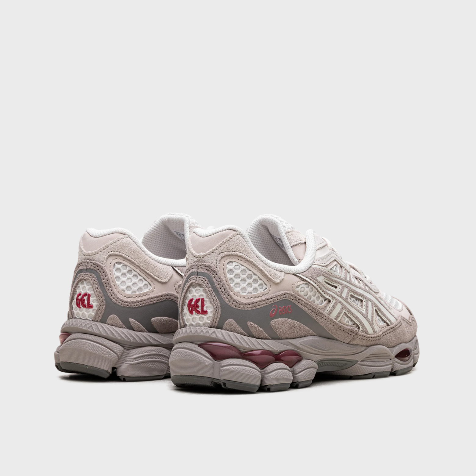 The ASICS GEL‑NYC "Cream/Moonrock" blends early‑2000s running style with modern comfort. Released on April 1, 2025, this unisex sneaker features a layered cream mesh and suede upper paired with Moonrock grey accents underfoot. Pops of red in the exposed GEL units and heel tag add visual interest. Built on the GEL‑CUMULUS 16 tooling, the midsole delivers lightweight cushioning, while dual GEL technology ensures responsive underfoot comfort. A durable rubber outsole completes the look—ideal for everyday style and support.