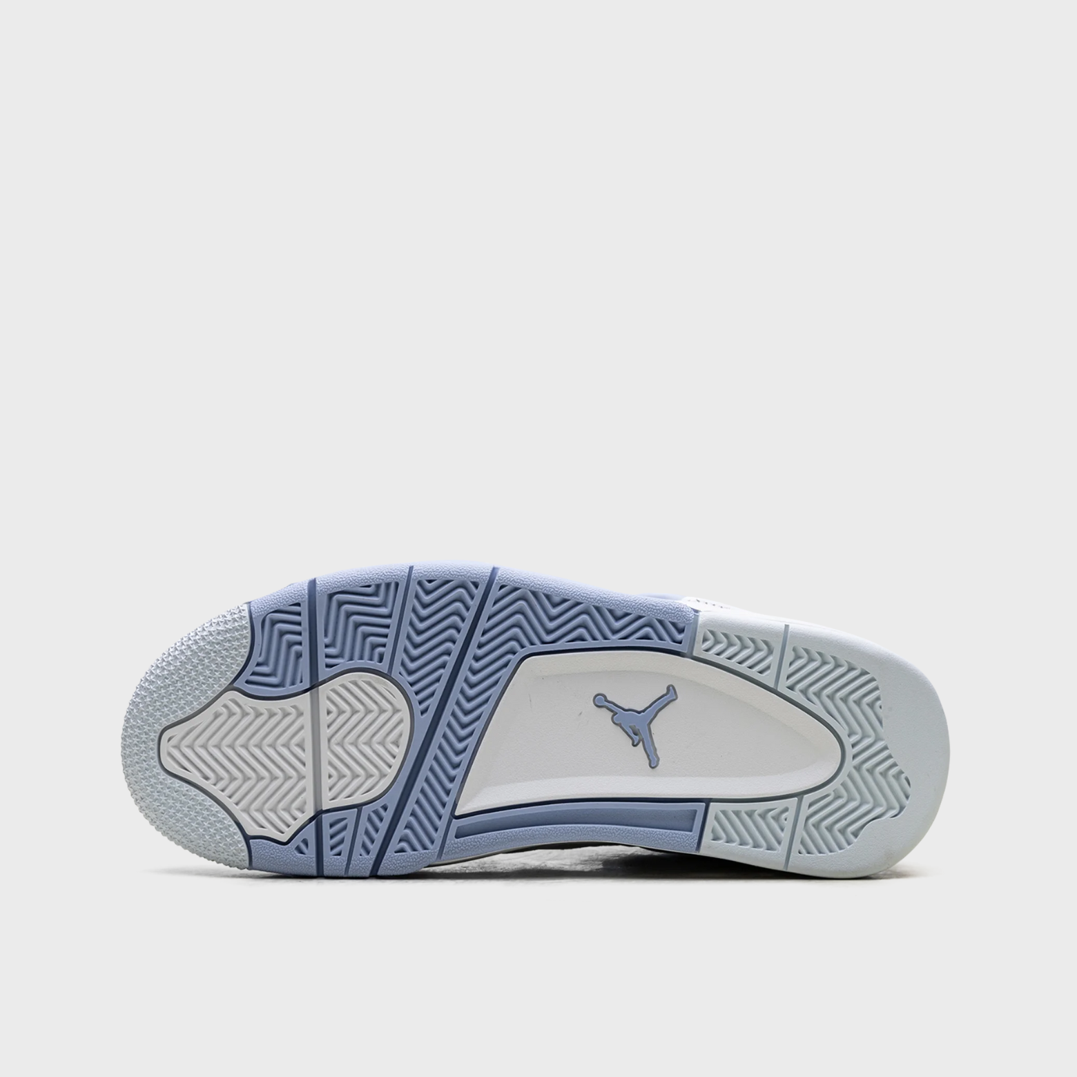 The Air Jordan 4 Retro "Forget Me Not" is a women's-exclusive release that pays tribute to Mother's Day with a delicate and thoughtful design. Released on May 3, 2025, this sneaker features a crisp white leather upper accented by soft Aluminum Blue hues on the mesh underlays, TPU wings, heel tab, and laces. A standout detail is the removable chenille floral patches adorning the laces, symbolizing the forget-me-not flower and adding a unique, textured element to the presentation. The design is completed with a white and aluminum midsole housing a visible Air unit in the heel, and a tonal rubber outsole, ensuring both comfort and style. This release also includes special, themed packaging, making it a perfect gift or collector's item.