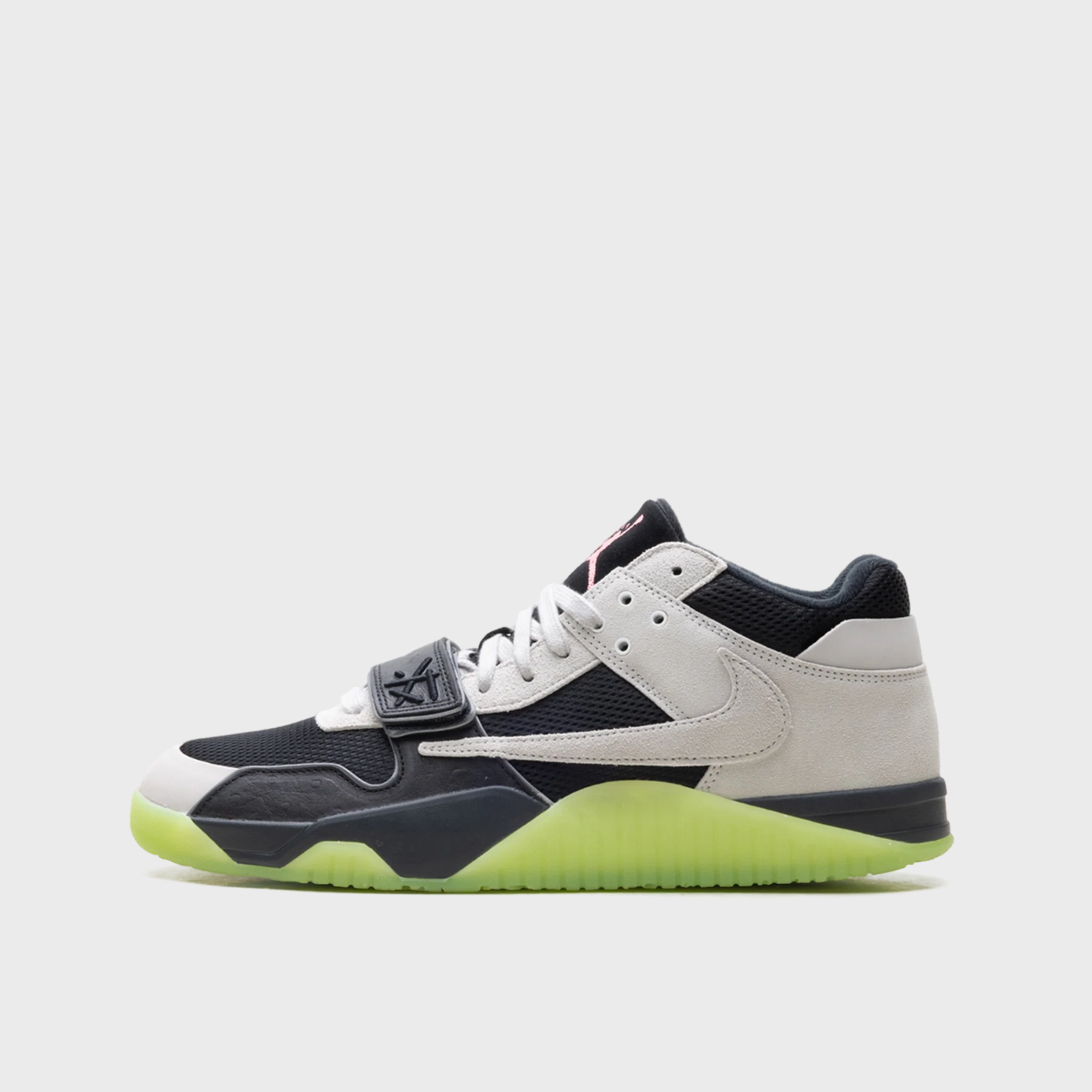 This collaborative take on Travis Scott’s Jumpman Jack silhouette pairs a stealthy Black Night upper with sharp Metallic Silver accents for contrast. Premium nubuck and textile layers deliver depth and durability, while bold co-branding—Cactus Jack hits alongside Chase B callouts—cements the collab’s studio-to-street identity. Signature details include the forefoot strap, rugged stitching, and a low-profile build designed for everyday wear.