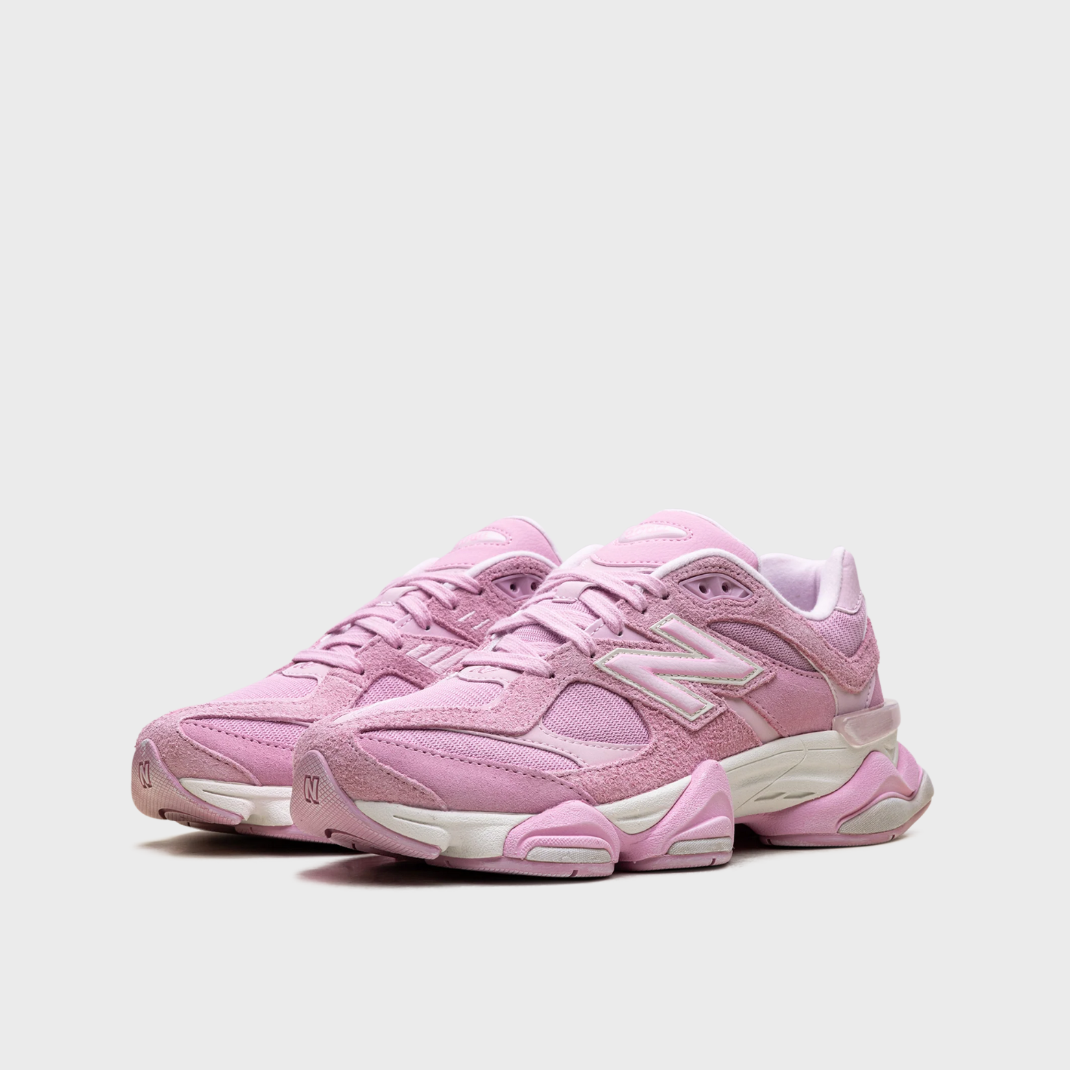 This limited-edition 9060 pairs a washed pink mesh base with overdyed suede and leather overlays for a soft, sun-faded effect. Layered panels, oversized reflective N logos, and a jewel-style tongue badge bring bold Y2K runner energy while keeping the palette wearable and clean.