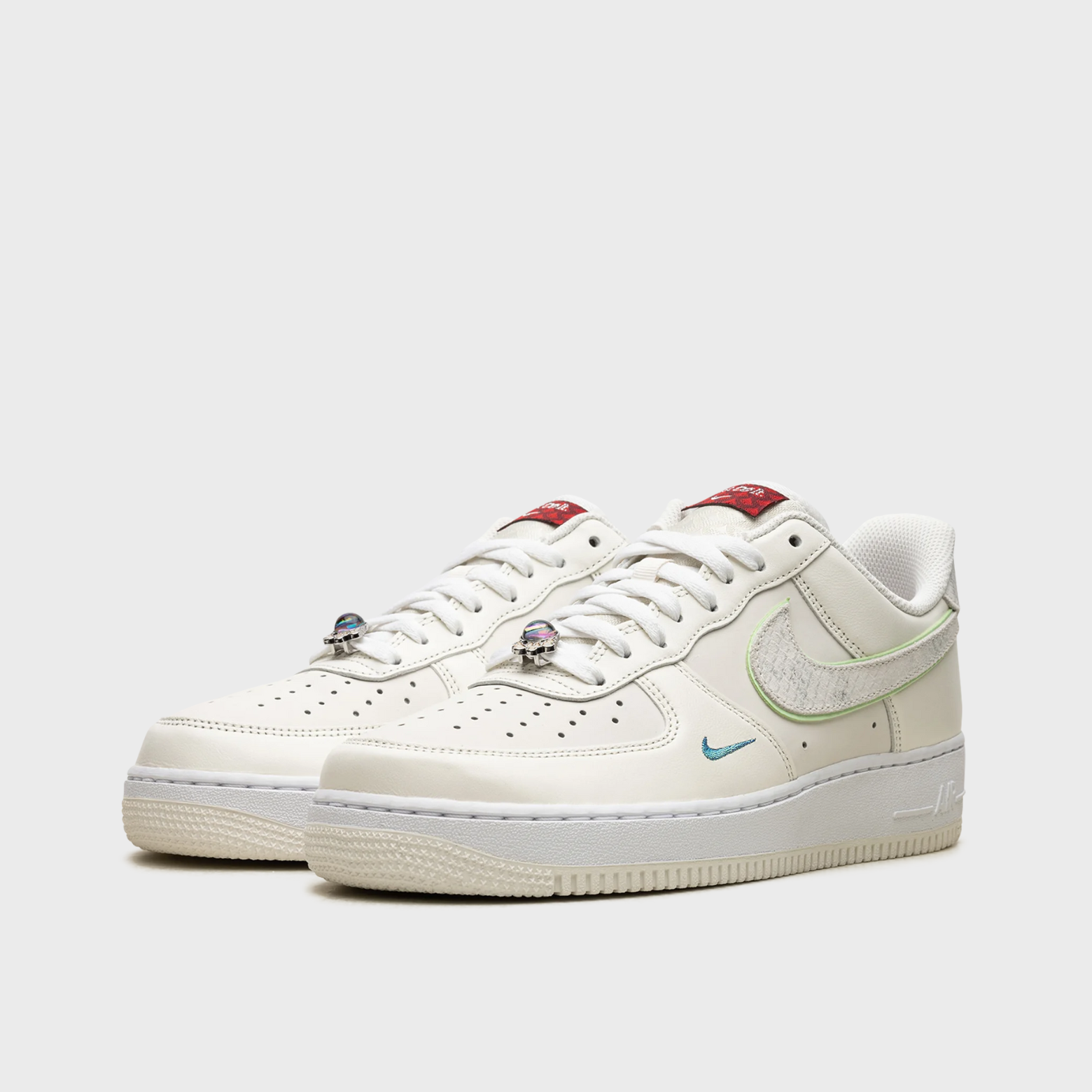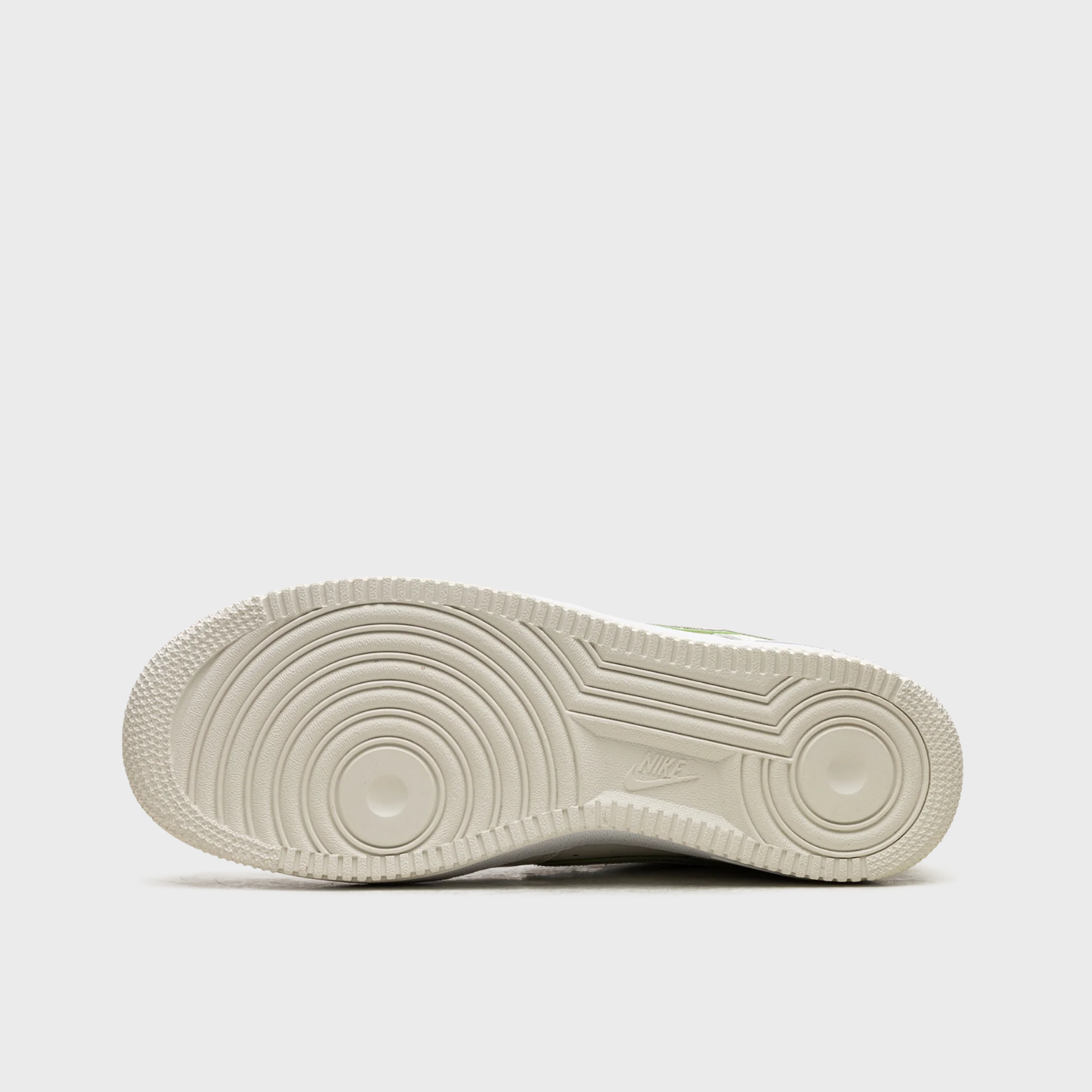 The Year of the Dragon 2024 iteration of the Nike Air Force 1 Low-Top '07 in a sail colorway features an upper of smooth sail leather with perforations in the toe box and along the quarter panel. Smooth sail leather overlays adorn the toe, eye stays, and collar. Patterned sail suede composes the Nike swoosh and heel tab. A vapor green mini swoosh appears on the mud guard and that same vapor green outlines the side panel swoosh. The white foam midsole encapsulates Nike Air and rests on a sail rubber outsole with a traction pattern designed for easy pivots.