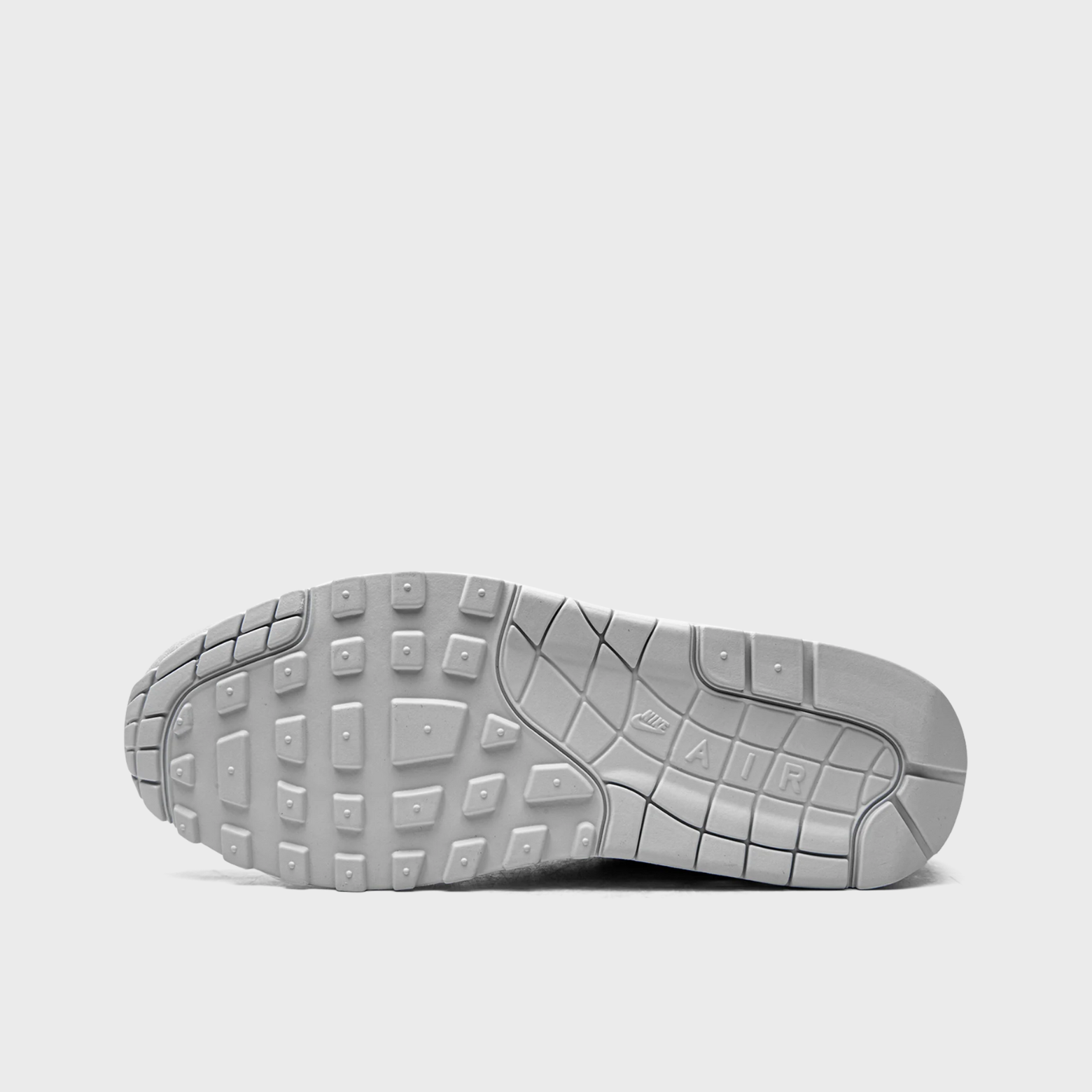 The Nike Air Max 1 London features a Smoke Grey, Valerian Blue, and Dark Smoke Grey corduroy, suede, and mesh upper with the lighter Smoke Grey at the toe and continuing up the eyestays before merging seamlessly into Dark Smoke Grey at the back of the heel and finishing with the vibrant hues of the Valerian Blue accenting parts of the silhouette. From there, a stark white midsole with cushioned "Air Max" technology breaks up the colorway, and an embroidered image of the Thames in Valerian Blue completes the design.