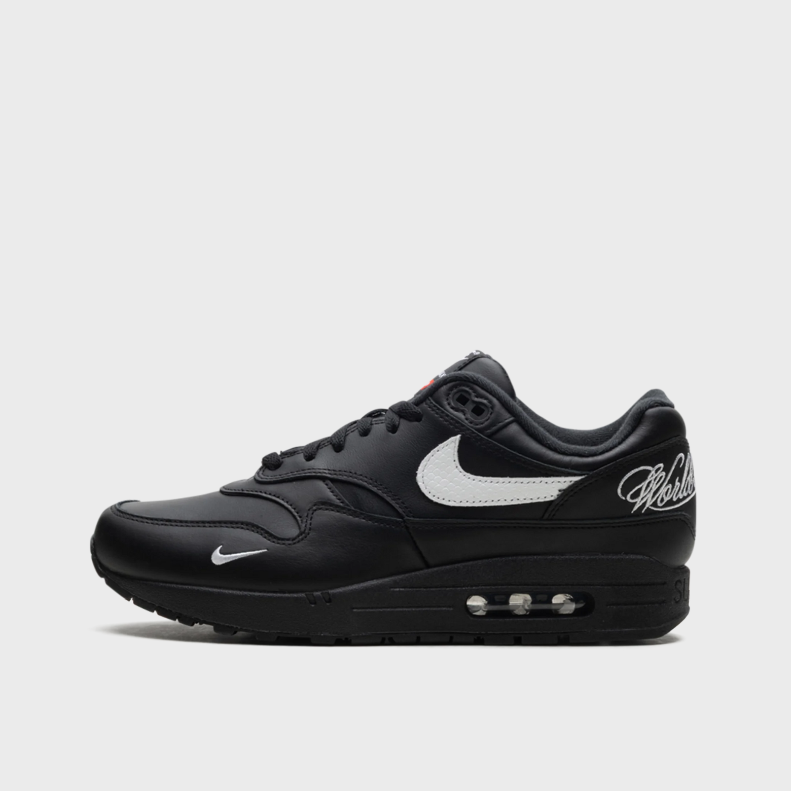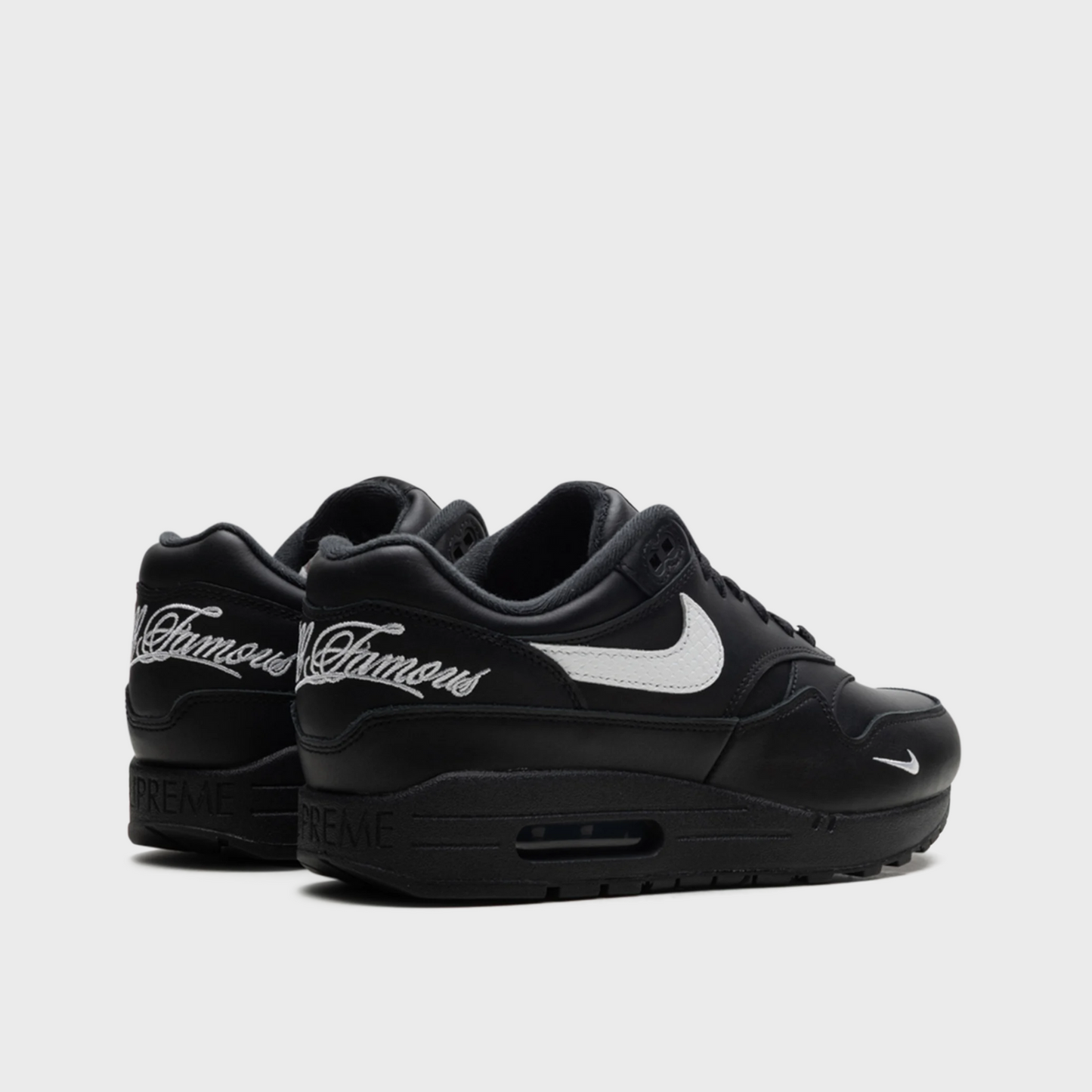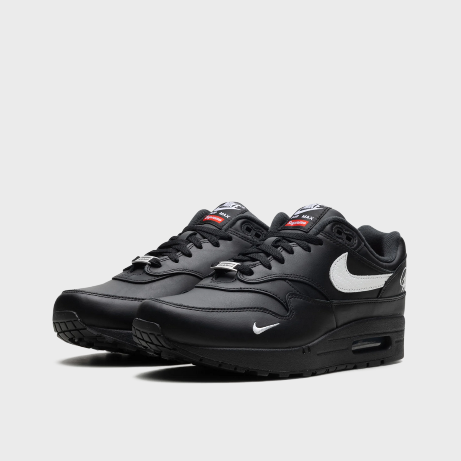 The Nike Air Max 1 Supreme Black White is a sleek and timeless take on the iconic Air Max 1 silhouette. Featuring a classic black and white colorway, this sneaker blends premium leather and mesh materials for a perfect balance of durability and breathability. The visible Air unit in the midsole delivers signature cushioning and comfort, while the rubber outsole ensures excellent traction. With its clean, monochrome design and legendary Air Max heritage, the Nike Air Max 1 Supreme Black White is a versatile must-have for sneaker enthusiasts and collectors alike.