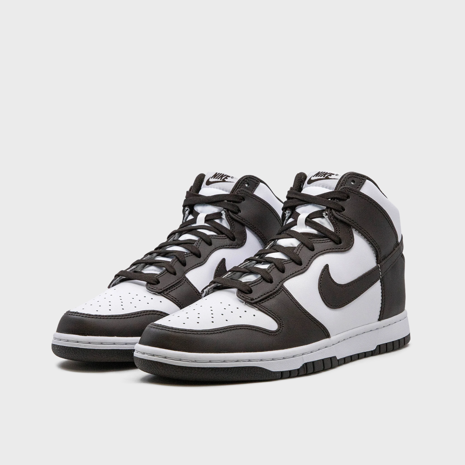 This Nike Dunk High sneaker features a leather upper with a white base and Palomino incorporated into the overlays. Palomino is also included on many of the other parts of the sneaker, including on the Swooshes, the laces, and the outsole. It provides a nice contrast with the white utilized on the midsole and the tongue.