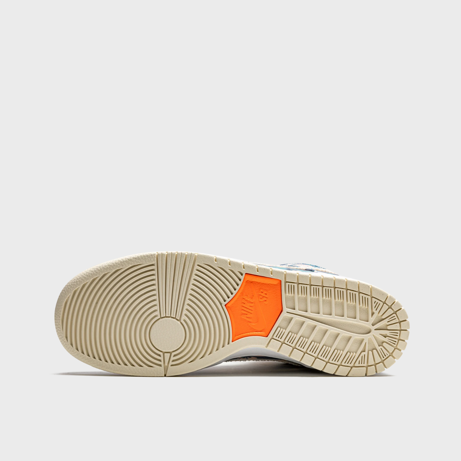 The upper of the Nike SB Dunk High Hawaii is covered in a blue, green, and pink floral fabric with a Sail textile Swoosh and tongue. With plenty of hard usage over time, the top layer of the upper wears away to reveal an orange floral fabric upper with shaggy green suede overlays. From there, a hidden stash pocket is located in the tongue. A bright orange Nike SB tongue tag, white midsole, and Sail outsole wrap up this island-themed design.